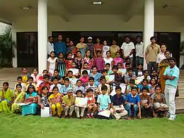 ![]() Prasad Ram interacting with student volunteers of the WIKIGYAN project at ISiM. |