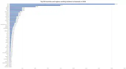 Top 15 countries and regions sending students to Australia in 2018 are listed below.[2]
