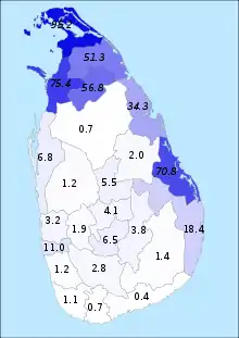 The Sri Lankan conflict exists primarily between the two majority ethnic groups, the Sinhalese, who are mostly Buddhist and represent around 74% of the population, and the Tamil, who are mostly Hindu, representing around 18%. The majority of Tamils live in northern and eastern provinces and claim them as their traditional homeland.[13]