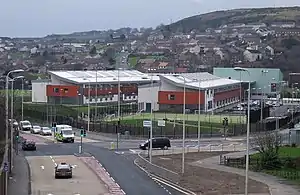 Initially, following the merger, the school was split between the old sites of Greenock High School, two minutes from the current site, and Wellington Academy, on the other side of the town. In September 2007 the students went on strike in protest about the teaching time lost commuting between the two sites.[5] As a result, Inverclyde Council decided that, from January 2008, all pupils would be housed in the Greenock High School campus on Inverkip Road until the new building could be occupied.[6][7]