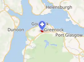 Inverclyde Royal Hospital is a district general hospital in Greenock which serves a population area of 125,000 consisting of Inverclyde (including Greenock), Largs, Isle of Bute and Cowal Peninsula.[2] Inverclyde Royal Hospital is one of three main hospitals in the South Clyde area, alongside Vale of Leven Hospital in Alexandria and Royal Alexandra Hospital in Paisley and is managed by NHS Greater Glasgow and Clyde.