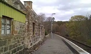 Invershin railway station is a railway station in the Highland council area of Scotland. The station is on the Far North Line, 61 miles 34 chains (98.9 km) from Inverness, between Culrain and Lairg.[2]