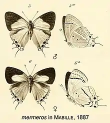Iolaus mermeros is a butterfly in the family Lycaenidae. It is found on Madagascar.[2] The habitat consists of forests.