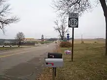 Iowa Highway 182 begins at an intersection with US 18 and County Road A42 (CR A42). At the intersection, eastbound US 18 approaches from the west, eastbound US 18 approaches from the south, and CR A42 approaches from the east. Iowa 182 travels north through Inwood for one mile (1.6 km) and continues due north through the farmland of Lyon County for eight miles (13 km) to an intersection with Iowa Highway 9.[1] The intersection with Iowa 9 is very similar to the intersection with US 18; eastbound Iowa 9 approaches from the north and westbound Iowa 9 approaches from the east.[2]