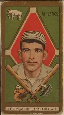 Ira Felix Thomas (January 22, 1881 – October 11, 1958) was an American professional baseball player. He played all or part of ten seasons of Major League Baseball, all in the American League, with the New York Highlanders (1906–07), Detroit Tigers (1908), and Philadelphia Athletics (1909–15), primarily as a catcher.