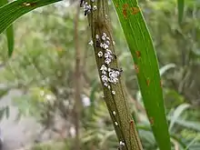 Workers forage nocturnally and diurnally, and will walk on eucalyptus trees to obtain nectar and honeydew, but they will also hunt for insects to bring back to the colony.[4] The ant tends a variety of species of insects, such as Saisettia oleae and the aphid Aphis hederae, and they also tend to the larvae of several butterfly species, including Jalmenus daemeli, Jalmenus evagoras, Jalmenus icilius and Ogyrus zosine.[4] The ants have been observed foraging on flowings in the genus Leptospermum and although the species is frequently encountered in the homes of Canberra, the ant is not considered a pest.[4]