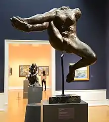 A 82.9 cm (32.6 in) high version, cast by Rudier in 1902-5, one of just seven known castings made during Rodin's lifetime, was sold for £11.57m at Sotheby's in 2016. It was sold from the collection of Sylvester Stallone, who had nicknamed it the "flying beaver". Stallone had acquired it at auction in 2007 for £4.6m, then a record for Rodin.
