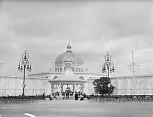 The decision to hold the exhibition was taken at the Irish Industrial Conference in April 1903,[1] and inspired by a small exhibition in Cork (the Cork International Exhibition) 5 years earlier.[2] The 1907 exhibition was intended to improve the trade of Irish goods.[3] The leading force behind the project was William Martin Murphy, a businessman and owner of the Irish Independent, Clerys department store (Clery & Co.), the Dublin United Transport Company and several other Irish and overseas ventures. Other organisers included the Irish journalist William Francis Dennehy.