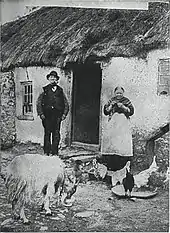 Only 17 per cent of labourers had lived in houses with five or more rooms in 1841; in 1861 one rural family in ten still lived in what were classed by the census as fourth class accommodation, essentially meaning one room per family. By 1911 only one per cent of families did. The bulk of the labourers' cottages were erected by 1916, resulting in a widespread decline of rampant tuberculosis, typhoid and scarlet fever.[36] Up to a quarter of a million were housed under the Labourers Acts by 1921. It is not an exaggeration to term it a social revolution, in a sense it was the first large-scale public-housing schemes in the country, a development neglected by historians, because the houses, rural based and more scattered, were not as evident as the urban tenements, that officialdom would not even look into.[37][38]