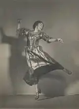 Irmgard Bartenieff (1900 Berlin – 1981 New York City) was a dance theorist, dancer, choreographer, physical therapist, and a leading pioneer of dance therapy. A student of Rudolf Laban, she pursued cross-cultural dance analysis, and generated a new vision of possibilities for human movement and movement training. From her experiences applying Laban’s concepts of dynamism, three-dimensional movement and mobilization to the rehabilitation of people affected by polio in the 1940s, she went on to develop her own set of movement methods and exercises, known as Bartenieff Fundamentals.[1]