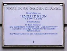 | Wikimedia Commons has media related to Irmgard Keun. |