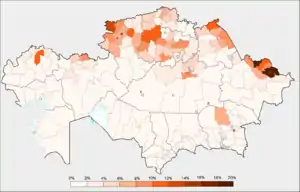 In 2019, 18.8% of Kazakhstan citizens can be identified as irreligious.[1][2][3][4]