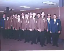 1970 USA Highschool Judo Team to Japan. George Wilson far left, Tommy Rigg 2nd from the left, Irwin Cohen 5th from the left, Steve Comer 8th from the left, and George Uchida on the far right.