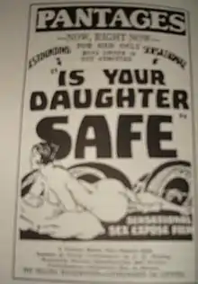 In San Diego, Millard was forced to retitle his film Is Your Daughter Safe? to The Octopus in order to meet the demands of city officials who found the title objectionable.[8] The film was described by Variety as "possibly the strongest and most dangerous" film of its kind at that point, but it still passed the standards of a group coordinated by the Motion Picture Producers and Distributors of America's Jason Joy, with the group initially stating that the movie taught "a very splendid lesson and that every girl over sixteen years of age ought to be compelled to see it."[3] The MPPDA, surprised at the lack of a condemnation, was eventually successful in gaining the condemnations from various women's groups and succeeded in withdrawing the film from a number of theaters in the Northwestern United States, paving the way for further challenges to the genre.[9] The success in San Diego led to the film being censored or banned in a number of other communities as time progressed, including persuading a Main Street theater chain in Seattle, Washington not to run the film and drawing condemnation for Is Your Daughter Safe? and a number of similar films by the Motion Picture Theater Owners of America.