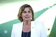 Isabella Lövin (born 3 February 1963) is a Swedish politician for the Green Party. She served as Minister for International Development Cooperation from 2014 to 2019, as Minister for the Environment from 2019 to 2021 and as Deputy Prime Minister of Sweden from 2016 to 2021. She led the Green Party as co-spokesperson from 2016 to 2021, sharing the task with Gustav Fridolin (2014-2019) and Per Bolund (2019-2021).
