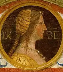 ![]() Lunette of Isabella of Aragon in the house of the Atellani, Milan. | |