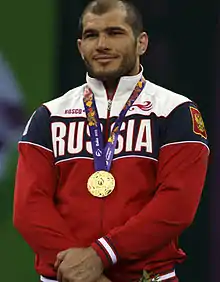 Islam Kurbanovich Magomedov (Russian: Ислам Курбанович Магомедов, Avar: Ислам МухӀаммад Къурбаназул вас); born 8 February 1991 in Makhachkala) is a Russian Greco-Roman wrestler of Dargin descent. He is a two-time Junior Greco-Roman World Champion[1][2] and Gold Medalist at the 2015 Russian National Greco-Roman Wrestling Championships.[3] On 12 June, 2015 he won gold medal at the European Games 2015, defeating Ukrainian Dimitriy Timchenko in the final.[4] In the same year Magomedov won bronze medal at the 2015 World Wrestling Championships. Magomedov is International Master of Sports in Greco-Roman Wrestling. He competed at Olympics 2016, but lost in the quarterfinals.