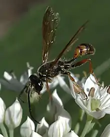 Isodontia elegans is a species of thread-waisted wasp in the family Sphecidae that hunt orthopterans.[1][2][3][4]