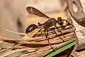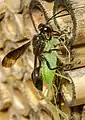 These wasps build their nests in hollowed branches or in other natural cavities, often reusing the nests of other species. Then they line the inside with grass fragments or other plant fibers (hence the name of 'Grass-carrying wasps').