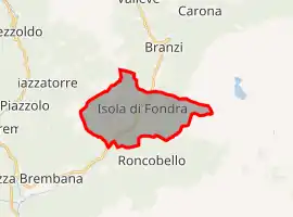 Isola di Fondra (Bergamasque: Fundra) is a comune (municipality) in the Province of Bergamo in the Italian region of Lombardy, located about 70 kilometres (43 mi) northeast of Milan and about 30 kilometres (19 mi) north of Bergamo. It is formed by three hamlets, Fondra, Pusdosso and Trabuchello.