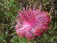 Isopogon dubius, commonly known as pincushion coneflower,[2] is a species of plant in the family Proteaceae and is endemic to the south-west of Western Australia. It is a shrub with sharply-pointed, deeply lobed or pinnate leaves and more or less spherical heads of pink to reddish pink flowers.