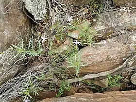 Isotoma axillaris, commonly known as rock isotome or showy isotome,[3] is a small herbaceous perennial in the family Campanulaceae. It usually has blue or mauve star-shaped flowers from September to May. It may also be called blue star, star flower, or laurentia.[2]