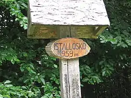 Istállós-kő (Hungarian: [ˈiʃtaːlloːʃkøː]) is a mountain in Hungary. With a height of 958.1 metres (3,143 ft) above sea level it is the second highest mountain of the Bükk and the sixth highest of Hungary. Before 2014 it was considered to be the highest point of the area, but according to recent surveys Szilvási-kő is 960.715 metres (3,151.95 ft) meters tall.[1]