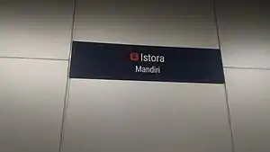 Istora Mandiri Station (Bank Mandiri granted for naming rights)[1][2] is a rapid transit station on the North-South Line of the Jakarta MRT in Jakarta, Indonesia. Located on Jl. Jendral Sudirman, it is located between the Bendungan Hilir and Senayan stations, and has the station code IST.