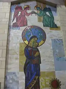- Nazareth, Basilica of Annunciation, southern wall, near a pillar (mosaic: Patrona Hungariae, 1969)