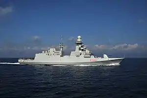 Carlo Bergamini (F 590) is a Carlo Bergamini-class frigate of the Italian Navy. Which in turn were developed by the FREMM multipurpose frigate program.[1]