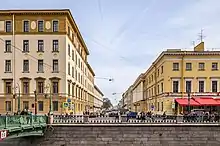 Italyanskaya Street is a street in Saint Petersburg, Russia, which goes from the Griboyedov Canal to the Fontanka Embankment. It intersects with the Arts and Manezhnaya squares, as well as the Mikhailovskaya, Sadovaya, Malaya Sadovaya and Karavannaya streets.