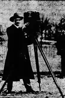 Beginning in the early days of silent films Itinerant filmmakers traveled across the USA to make their movies on location with “home talent.” They capitalized on the public’s desire to see themselves and/or their children in the movies. The filmmakers hoped to cash in on the vanity of politicians, high-society types and prominent businessmen and their families. They would pay a small fee to be in the movie and townspeople would pay to watch their neighbors in the film. It was also common for the local chamber of commerce to pay the production expenses and choose the backdrop and locations for filming. Many times it was promised that the film would be shown around the country, enticing the viewers to come and visit the places they saw. The film would then be returned to the Chamber after its run. They often filmed the same characters in the same story over and over, only changing the cast in each city. Sometimes the title would change leading people to think their particular film was unique. These itinerant films were popular in the silent era, but in some cases they were still operating into the 1970s. Several people made careers out of making itinerant films.[1]
