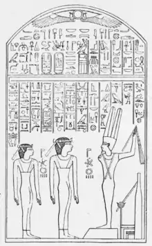 Iuhetibu Fendy (also written Jewhetibew Fendy[1]) was an ancient Egyptian princess of the Thirteenth Dynasty. She was the daughter of king Sobekhotep III and of queen Neni. Iuhetibu Fendy is known from two sources. She appears on a rock-cut stela in the Wadi el-Hol and she appears on a stela from Abydos now in the Louvre in Paris (C8).[1] On the stela she is shown together with her sister Dedetanqet (also written Dedetanuq) in front of the fertility god Min. Her two names are written within a cartouche (a ring that enclosures the name), a privilege that was given in this time very rarely to royal women and points to a special status of Iuhetibu Fendy. Iuhetibu Fendy bears a double name. The first name Iuhetibu was also the name of Iuhetibu Fendy's grandmother. Naming children after grandparents was not uncommon in Ancient Egypt.[1] Fendy is a nickname meaning "nose".[2]