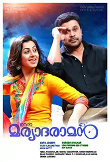 Ivan Maryadaraman is a 2015 Indian Malayalam-language comedy-drama film directed by Suresh Divakar starring Dileep, Nikki Galrani, Nagineedu and Kailash[1] with a supporting cast including Anand, Sudheer Sukumaran, Abu Salim, Santhosh Keezhattoor, Vadivukkarasi, Thara Kalyan, Sunil Sukhada, Ponnamma Babu and Saju Navodaya. The film is produced by Anto Joseph under Anto Joseph Film Company and scripted by Udayakrishna-Siby K. Thomas. This movie is a remake from the 2010 Telugu film Maryada Ramanna, which itself is inspired from Buster Keaton's 1923 silent film, Our Hospitality.[2][3][4][5][6][7]