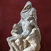 In 1908 Meštrović moved to Paris and the sculptures made in this period earned him international reputation. At this time, Ivan was a friend of the cubist painter Jelena Dorotka (Helene Dorotka von Ehrenwall). In 1911 he moved to Zagreb, and soon after to Rome where he received the grand prix for the Serbian Pavilion[4] on the 1911 Rome International Exhibition. There his work was praised as being strong and monumental compared to the "soft and ineffectual" pieces exhibited by his contemporaries, Hugo Lederer, Anton Hanak, and Franz Metzner.[5] He remained in Rome, spending four years studying ancient Greek sculpture.