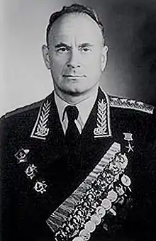 Ivan Alexandrovich Serov (Russian: Ива́н Алекса́ндрович Серóв; 13 August 1905 – 1 July 1990) was a Russian Soviet intelligence officer who served as the head of the KGB between March 1954 and December 1958, as well as head of the GRU between 1958 and 1963. He was Deputy Commissar of the NKVD under Lavrentiy Beria, and played a major role in the political intrigues after Joseph Stalin's death. Serov helped establish a variety of secret police forces in Central and Eastern Europe after the construction of the Iron Curtain, and played an important role in crushing the Hungarian Revolution of 1956.[1]