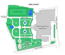 The gardens in their present form were designed by Ninian Niven, in 1865, as an intermediate design between the 'French Formal' and the 'English Landscape' styles.[16] They demonstrated the artistic skills of the landscape Architect of the mid 19th century.[16]