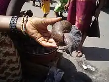 Cassava and plantains are significant parts of Ivorian cuisine. A corn paste called aitiu is used to prepare corn balls, and peanuts are widely used in dishes. Attiéké is a popular side dish in Côte d'Ivoire made with grated cassava and is very similar in taste and consistency to couscous.[1] A common street-vended food is alloco, which is ripe plantain banana fried in palm oil, spiced with a spicy sauce made of onions and chili.[1] It can be eaten alone as a snack or often with a hard-boiled egg, as well as a side dish.