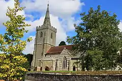 The parish church, dedicated to St Mary, has a nave, north aisle and north transept dating from the mid-12th century, though it is probable there was a minster and clergy community here before that, as indicated by the village's name and its large size in the Domesday Book.[2]