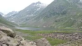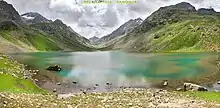 Izmis Lake is a lake in Swat District, Khyber Pakhtunkhwa, Pakistan, located to the south-west of Utror valley at a high altitude above the tree line. The name Izmis means "caves" in Kohistani, and as the lake is surrounded by several natural caves, the people have named the lake after these caves. A small jeep-able link road from Utror leads towards the location of the lake, which ends in a valley called Loypanrghalay. The lake can be accessed from here after trekking for almost 3–6 hours.[1]