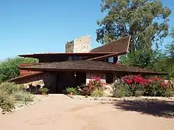Georgia Boomer purchased several properties in Norway, and after her death the urn with her ashes were deposited at one of her farms. Her name is also remembered in connection with the house on North 30th Street in Phoenix, Arizona designed for her in 1953 by Frank Lloyd Wright, commonly referred to as the Jørgine Boomer Residence.[3][12]