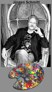 Jürgen Schmitt alias Schmitti (born 5 November 1949 in Bonn) is a German painter, photographer, and as "Schmitti", a composer, lyricist and Schlager-singer. He lives and works in the village of Scheven (population ca. 560) (Kall, North Rhine-Westphalia) and there he has his studios. Schmitt studied from 1970 to 1976 at the Art Academy in Düsseldorf under Professor Joseph Beuys and Professor Irmin Kamp and he was appointed in 1975 for his artistic achievements "Meister Schüler". He had many exhibitions in Germany and abroad.