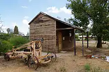 Adams Leaning Wheel grader no.21, outside the original offices the Nungarin roadboard
