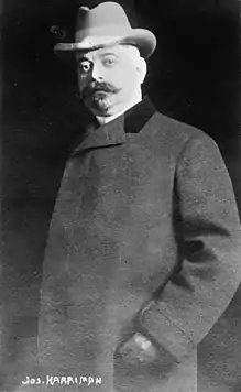 Joseph Wright Harriman (January 31, 1867 – January 23, 1949) was the president of Harriman National Bank and Trust Company.[1] He was the nephew of railroad tycoon Edward H. Harriman and cousin of diplomat, statesman and future New York Governor W. Averell Harriman. In 1934 he was convicted of bank fraud and sent to Lewisburg Federal Penitentiary,[2] where he served 25 months of his 4+1⁄2 year sentence before receiving parole.[3] Between his arraignment and the start of his trial, Harriman twice walked away from care facilities, and his attorneys tried, without success, to establish that he was incompetent to stand trial.