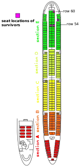 The four survivors, all female, were seated on the left side and toward the middle of seat rows 54–60, in the rear of the aircraft.[1]: 22