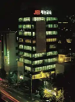 JEI Corporation (JEI: Jaeneung Educational Institute) is a Korean educational company founded in 1977.[1] Currently, the headquarters is located at 293 Changgyeonggungro, Jongno-gu, Seoul. The company is known for its supplementary education programs for children and adults.[2] JEI offers supplementary learning programs for home education, operating self-learning centers for children (JEI Learning Center) and establishes a general education network in various fields including publishing, broadcasting, IT, printing, distribution, culture and arts.[3][4] In particular, the company has been supporting Si-nangsong(poetry recitation) for 27 years since 1991. The founder, Sung-hoon Park, was honored as an honorary poet at the Society of Korean Poets for his contribution to promote the 'Si-nangsong' in Korea.[5] Also, the JCC Art Center located in Hyehwa-dong, recognized as the only work of renowned Japanese architect Tadao Ando in downtown Seoul, is owned and operated by JEI.[6] Outside of S. Korea, JEI's learning program is offered in U.S., Canada, China, Japan, Australia and New Zealand exporting its ‘JEI’ brand globally.