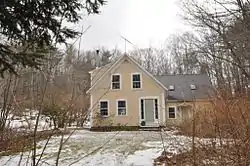 The Jabez Townsend House is located in eastern Harrisville, on the west side of Cherry Hill Road just south of its junction with Hancock Road. It is a 1+1⁄2-story L-shaped wood-frame structure, with a gabled roof and clapboarded exterior. Its main block is rectangular, with single-story ells extending to the rear and right. Its main facade is three bays wide, with the entrance in the rightmost bay, flanked by sidelight windows and pilasters, and topped by a peaked architrave. The windows on the facade have similarly peaked lintels. A secondary entrance is set in an ell projecting to the right side from the rear of the main block; it is sheltered by a gabled hood.[2]