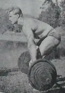 At 16 Delinger began training at the local YMCA. He looked to John Grimek for inspiration throughout his training. At Oakland Technical High School,[3] Delinger was a member of the gymnastics team. Soon after, he joined Ed Yarick's gym. Yarick was a man whom Delinger looked up to and who was a role model for aspiring bodybuilders. In 1946 Delinger won his first contest, Mr. Northern California. Delinger had great upper body strength but it was noted that his legs were somewhat underdeveloped. With much hard work he corrected this problem. In 1949 he went on to win the AAU Mr. America. In 1956, at 30 years of age, Delinger won the NABBA Pro Mr. Universe. Delinger and his wife Loretta went on to open their own gym in Santa Barbara, California, and later at Broadway at College Avenue in Oakland, California.