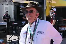 Rarely seen without his trademark Panama hat, Roush is known on the NASCAR circuit as "The Cat in the Hat".