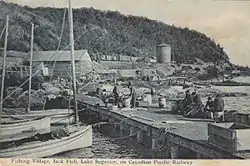 With its location as a railway siding, along a beach area, amongst Lake Superior's otherwise rocky shoreline, Jackfish became a port of commercial fishing. Fish were caught here and packed in ice and loaded aboard trains bound for markets in Toronto and Montreal.